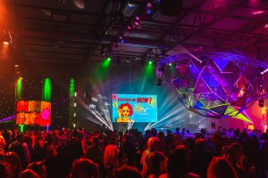Na een volledige make-over van de venue, transformeerde dezelfde zaal naar een totaal nieuwe wereld: een kleurrijk, feestelijk pop art-decor, helemaal in retro vibes.